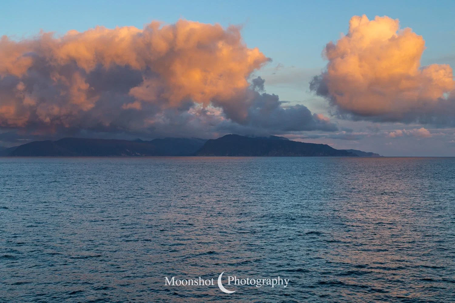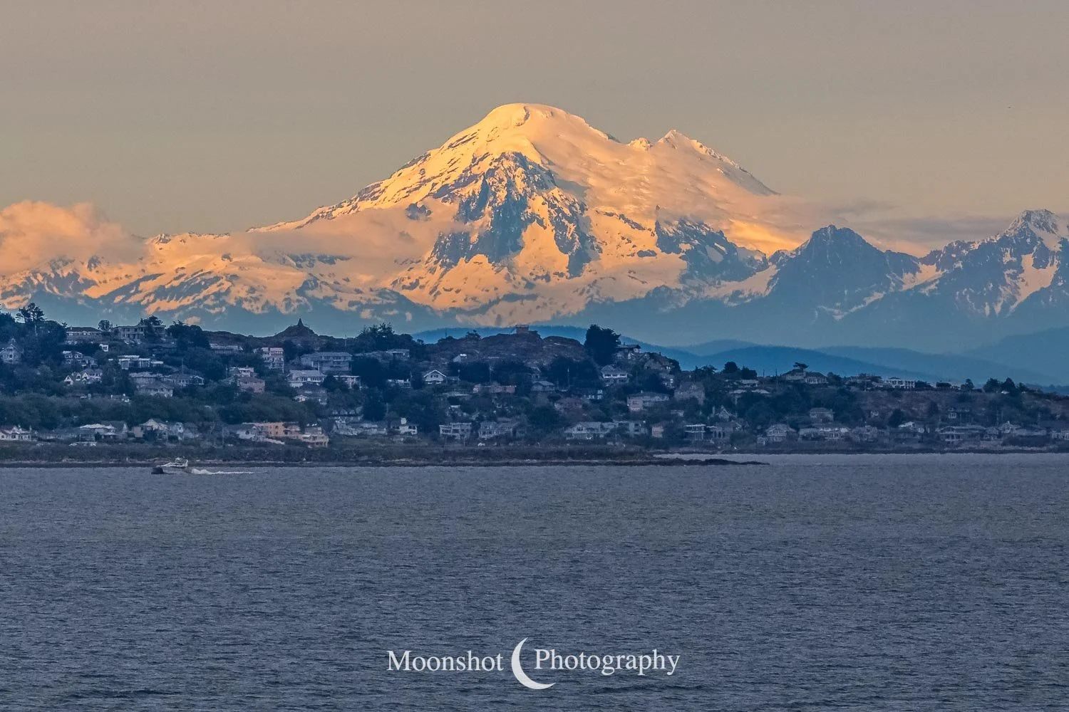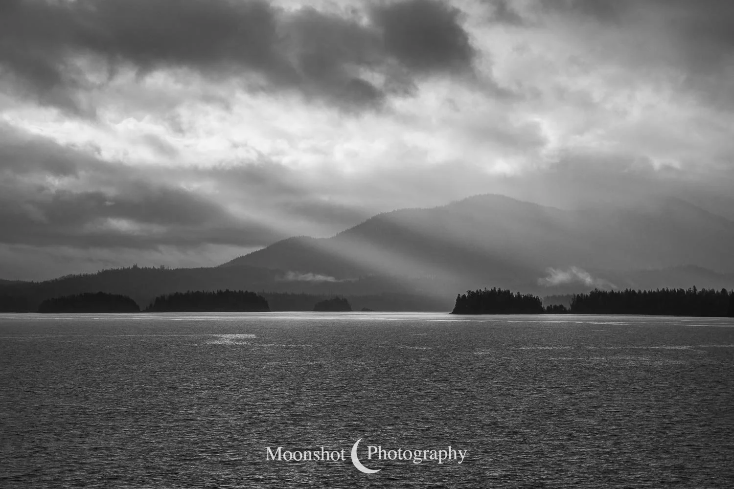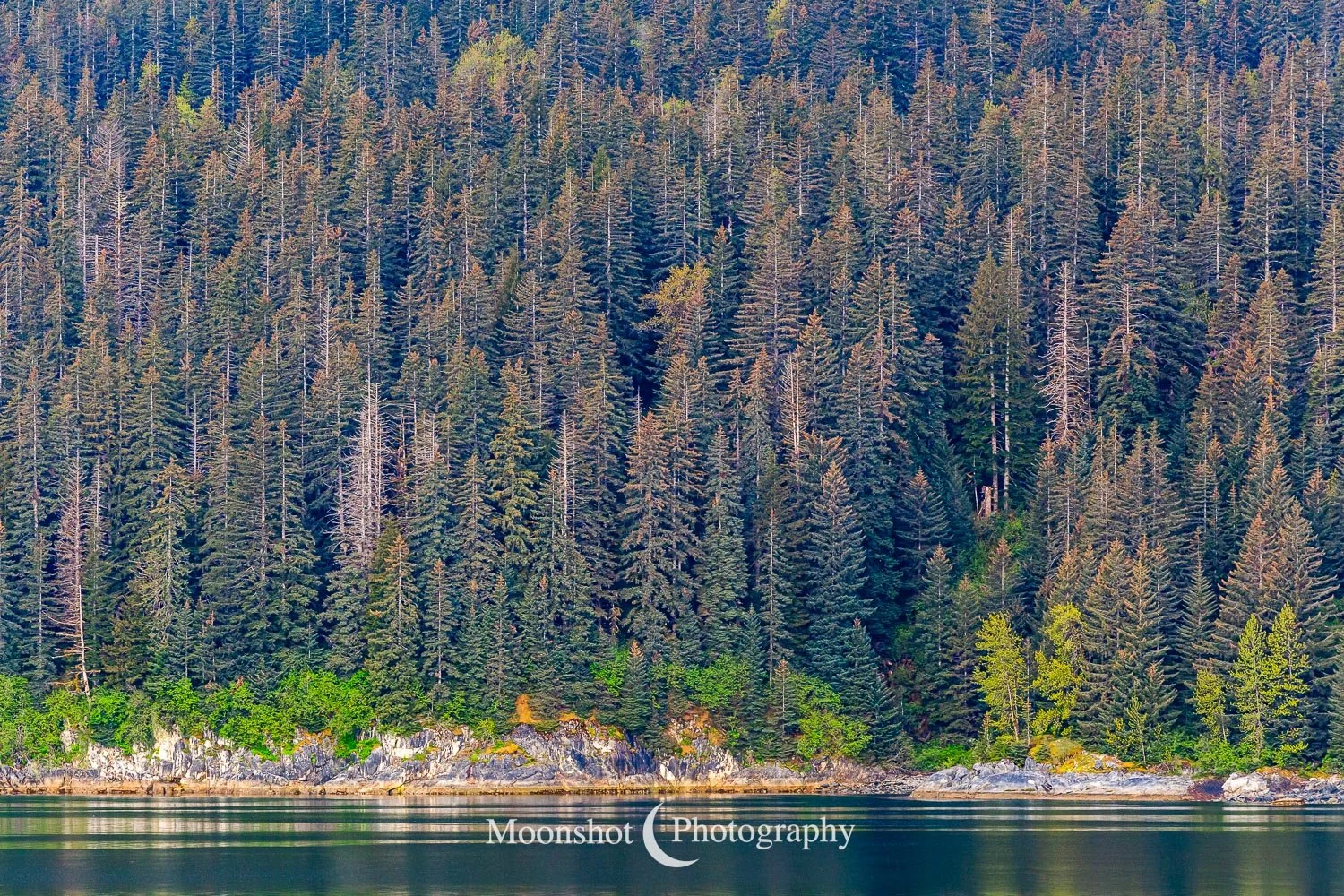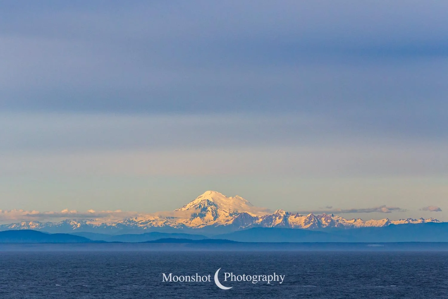 The far northern latitudes mean daylight lasts a long time in the late spring and summer. It also provides for extended periods of dawn and dusk. Put together with the ocean, mountains, and clouds, the sunrises and sunsets can be both unique and spectacular. I had never seen anything quite like the sunset at Icy Strait Point. There was rain to the north between the little islands and the mountains. The clouds to the far west had broken, leaving a sliver of clear horizon. As the sun descended to this point, I had expected the rain and canopy of clouds to be illuminated in gold, but instead, only the rain at the surface was set alight… in pink!
