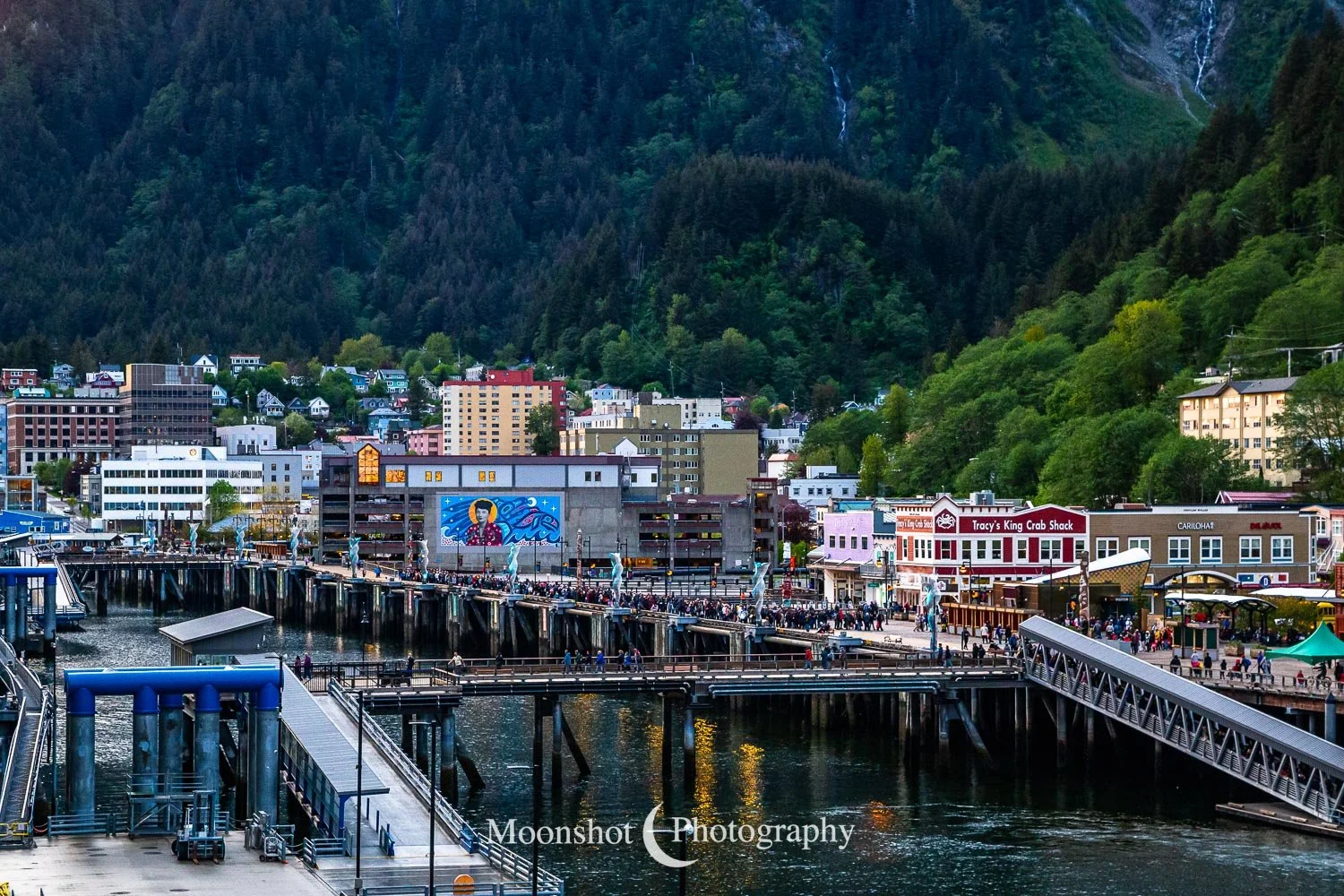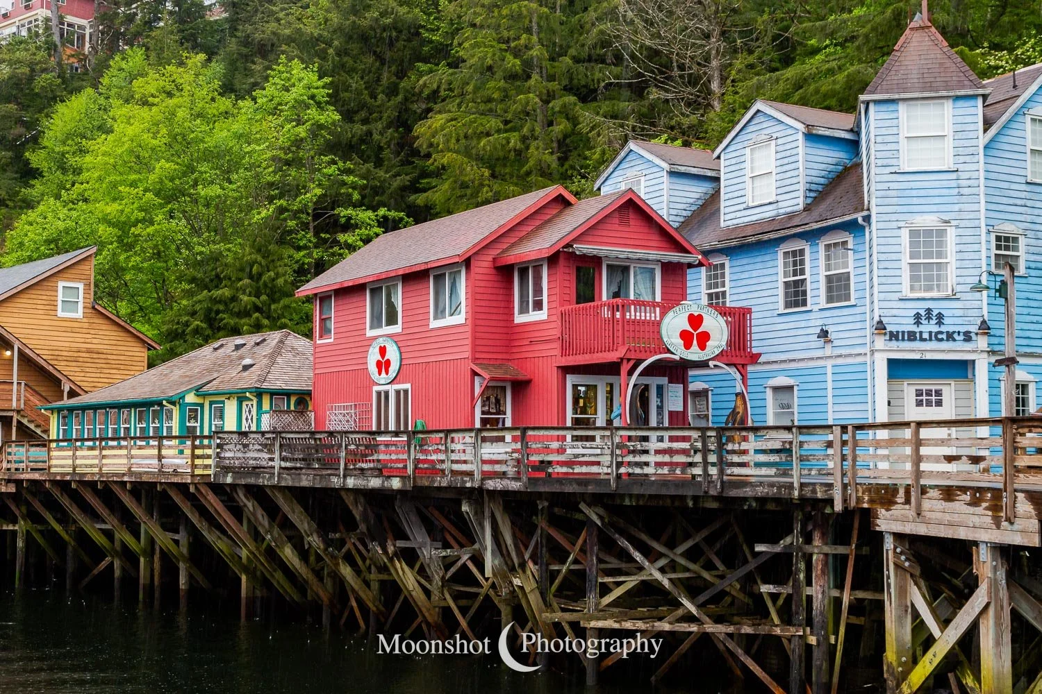 Thursday brought us into Ketchikan, which averages 270 days of rain a year. The brightly colored buildings of Creek Street sitting on stilts provide a beautiful contrast to the gray skies and the deep green forest.